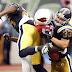 He may also be one of the toughest players in the NFL, this hit knocked him out and he had to get screws in his jaw. QB Kurt Warner, (who passed the ball) was so upset about what had happened he almost retired after the game. Amazingly Bolding came back in only 2 weeks: