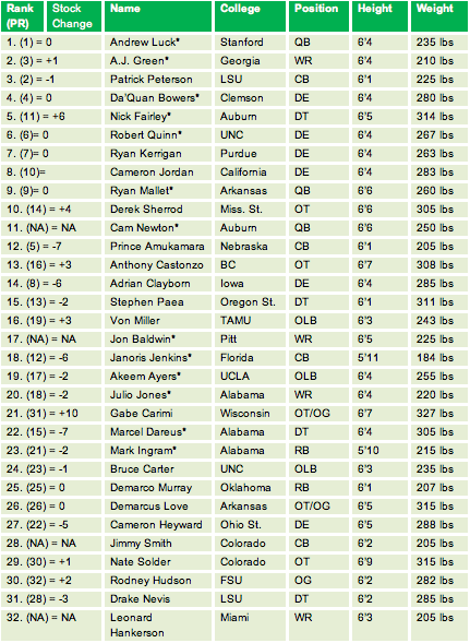 *Noteable addition(s) to Big Board: Cam Newton, Jon Baldwin, Jimmy Smith and Leonard Hankerson
